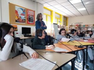 Vous écoutez LES 5F SE METTENT AU VERT, l’émission écolo du collège Victor Hugo de Chartres. Le 23 février 2024, on a enregistré notre première émission de radio au CDI du collège.