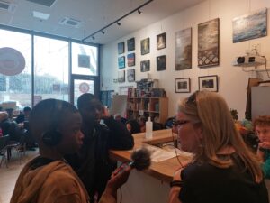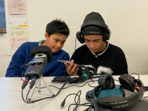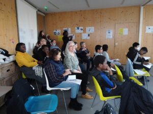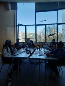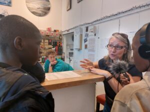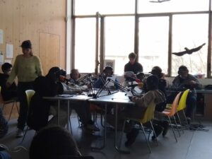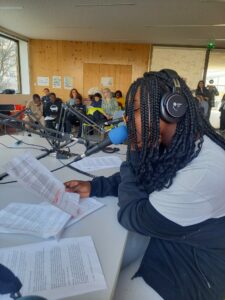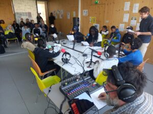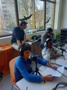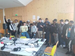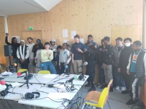 De février à avril, chaque groupe a produit de l’information à son échelle dans son quartier en partant de sujets choisis par les jeunes, avant de mettre en commun leur travail pour l’émission finale, enregistrée à Maison 13 solidaire.