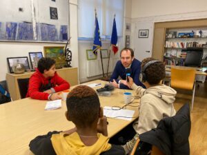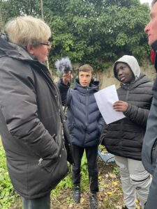 Après quelques séances de préparation – conférence de rédaction, définitation des sujets et des angles en lien avec la thématique, recherches, préparation des questions -, toute la classe a pu sortir du collège pour une après-midi de terrain, comme de vrais journalistes.